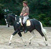 Freestyle is a gorgeous 17HH black Hessen stallion with an athletic body, very well applied hindquarters and a super character. At the 100 day Performance test at Prussendorf he was awarded a 10 for 'character' and a 9 for 'temperment'. In dressage he proved to rank amongst the best of his year and received a 9.33 for rideability. Not only talented in dressage Freestyle obtained the 7th place in jumping with an 8 for 'jumping ability'. His total score was 132.55 pts and he was the overall winner of his stallion testing.